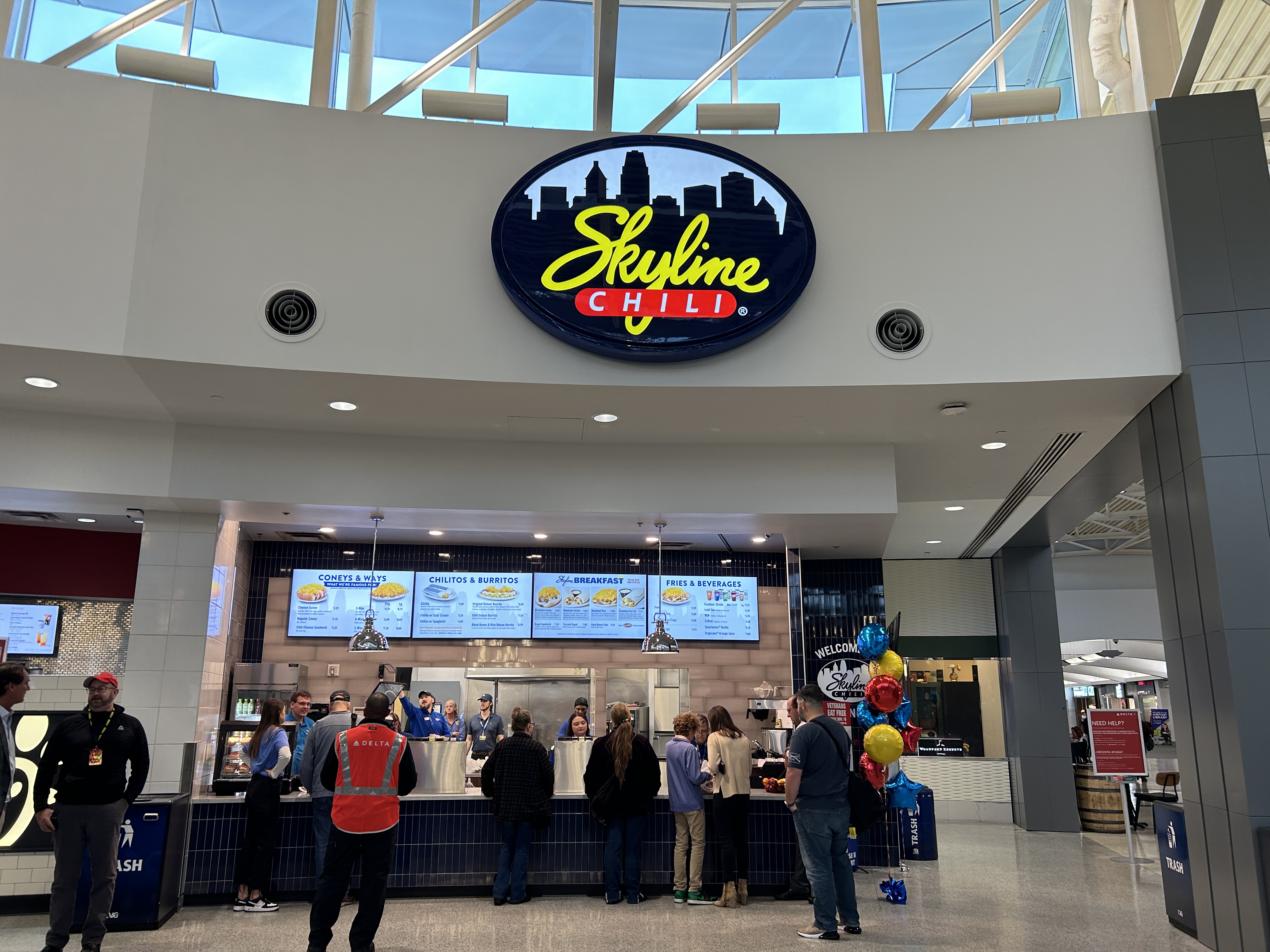 Local 12 / November 10, 2023HEBRON, Ky. (WKRC) - Skyline Chili has ventured into breakfast territory, and there's only one place you can order.A breakfast menu is available from the Cincinnati staple at its CVG airport location, which celebrated its grand opening on Friday at the food court in Concourse B.The new selections include a Skyline Breakfast Coney, Breakfast Chilito, Breakfast Way, and Breakfast Burrito.Skyline Chili still offers its traditional menu items, including Cheese Coneys and Ways, for travelers.“It’s important that CVG offers our passengers a unique Cincy region experience, which includes our area’s world-famous chili,” said Candace McGraw, chief executive officer, CVG. “We welcome Skyline Chili and are pleased to host their first airport location.”[FULL STORY HERE](https://local12.com/news/local/feeling-good-and-hungry-new-skyline-chili-restaurant-open-cvg-cincinnati-northern-kentucky-airport-breakfast-burrito-menu-coney-chillito-cheese-coneys)Read more